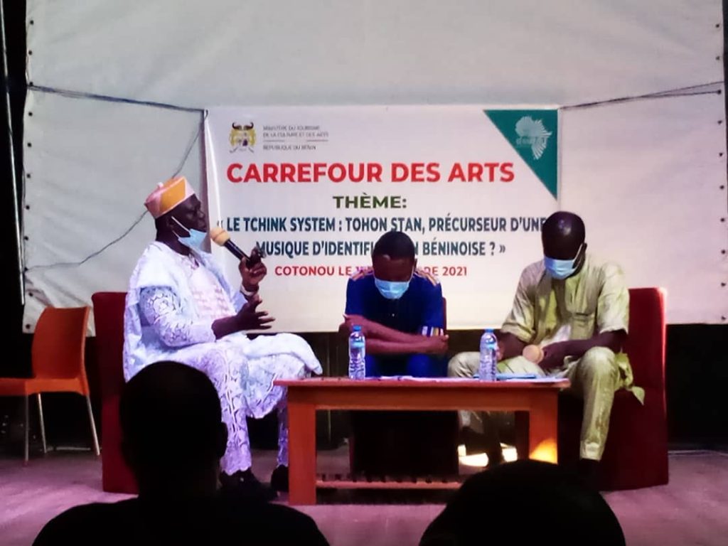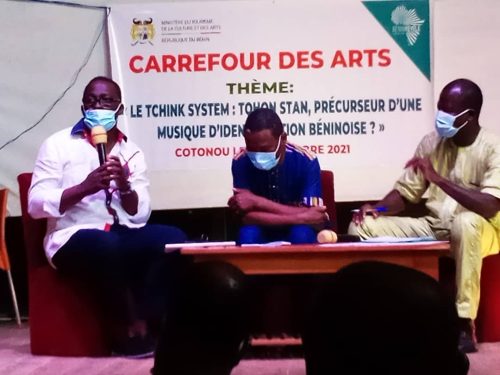 Tchink system: Stan TOHON, précurseur d’une musique d’identification pour le Bénin? C’est autour de ce thème que s’est tenu le premier numéro du Carrefour des arts. Une initiative du Ministère du tourisme, de la culture et des arts visant à rassembler périodiquement autour des questions de développement culturel, les acteurs du secteur. Tenu sous la houlette de Éric TOTAH Directeur de cabinet du ministère de la Culture et de Blaise TCHETCHAO, Directeur des Arts et du Livre, les acteurs culturels composés de chanteurs, danseurs, musiciens, ingénieurs, arrangeurs, producteurs, journalistes culturel, Animateurs Radio et télé ont réfléchi à l’apport du Tchink System de Stan TOHON dans l’identification et l’explosion internationale de la musique béninoise.