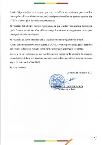 Retrouvez sur ce lien, en lecture et en téléchargement libre, l’intégralité du message du Ministre Benjamin HOUNKPATIN