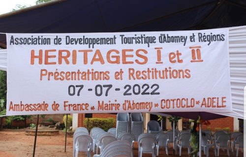 Le projet dénommé « Héritages » initié par l’ Association de Développement Touristique d’Abomey et Régions, financier par l’ambassade de France a fait l’objet de présentation et de restitution aux populations de la ville historique d’Abomey ce jeudi 8 Juillet 2022.