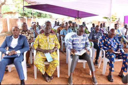 L’évènement a mobilisé des têtes couronnées des chefs féticheurs, sages notables de la localité. Gabin Djimassè, Directeur de l’Office du tourisme d Abomey et régions a pris la parole pour souhaiter la bienvenue à toutes les distinguées présences avant de repréciser que les textes des documents HÉRITAGES Tome 1 et Tome 2 ne sont pas des inventions ni de la déformation ; mais des productions sorties de la pure recherche au niveau des chansons qui restent encore la source de la bibliothèque du royaume de Danhomey. Le maire d’Abomey Antoine Djédou avait à l’occasion exprimé sa gratitude à l’endroit de l’Ambassade de France compte tenu de la réalisation du projet »Héritages » dans sa commune. Il plaide pour que l’Ambassade de France poursuive l’appui financier jusqu’au point où les sites royaux soient complètement sécurisés à Abomey. Salomon OKIRI, représentant l’Ambassade de France a apprécié à sa juste valeur le projet »Héritages » qui a été bien conçu par les initiateurs; qui est une importance capitale pour la ville historique d’Abomey. Pour lui le projet a motivé l’Ambassade de France qui n’avait ménagé aucun effort pour son financement.