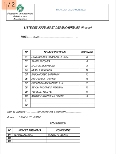 Liste des joueurs sélectionnés pour la Can Mara’can 2022.