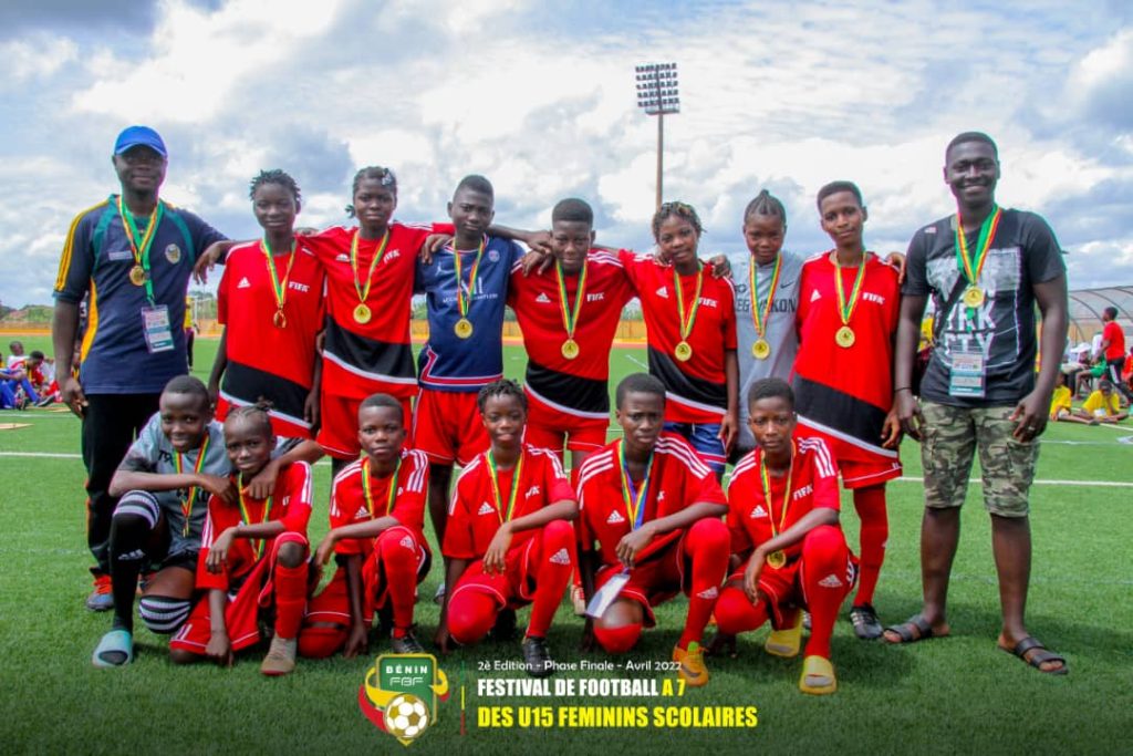 La phase finale du festival de football à 7 des U-15 féminins scomaires a connu son épilogue le vendredi 15 avril 2022 sur les installations du stade omnisports d’Abomey. A l’issue de la grande finale disputée entre le collège d’enseignement général de Vakon et son homologue de Djassin, c’est le CEG Vakon qui prend le dessus sur le score de deux buts à zéro confirmant ainsi sa suprématie.
