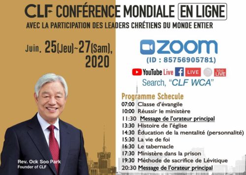 Le Pasteur Ock Soo PARK, fondateur de la CLF, fondateur de la Mission de la Bonne Nouvelle, est un pasteur actif dans le monde. En mai dernier, le «Séminaire Biblique en Ligne » dirigé par le Pasteur Ock Soo PARK, avait donné un bon exemple avec le changement de mode du culte occasionné par la pandémie du Covid-19, ce qui a été relayé dans 94 pays et a conquis le cœur des chrétiens du monde entier.