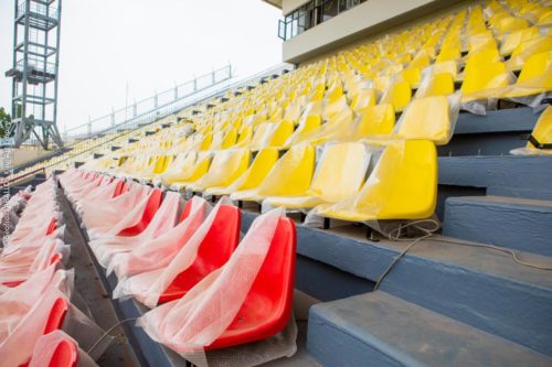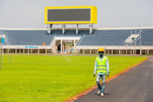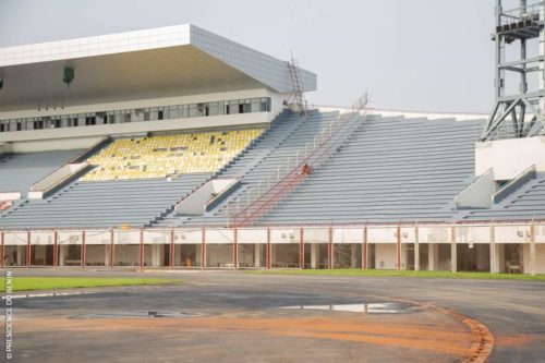 Après avoir visité les différents compartiments de l’ouvrage (vestiaires des joueurs, sièges des spectateurs en cours d’installation dans les tribunes, la piste d’athlétisme, le gazon sur l’aire de jeu …), le Ministre Oswald HOMEKY s’est dit satisfait de l’avancée des travaux de réhabilitation. « L’essentiel des travaux a été réalisé avec des matériels qui répondent aux normes internationales », a-t-il indiqué.