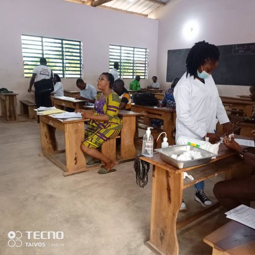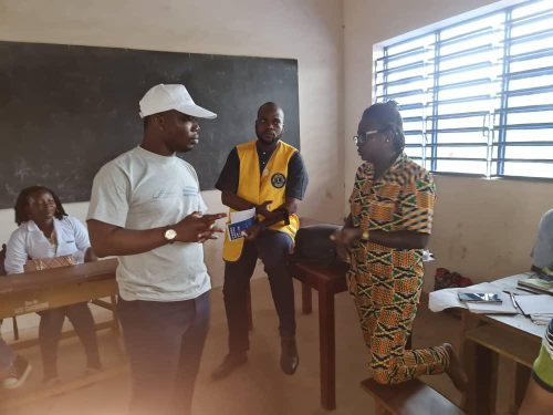 Ils ont choisi le mercredi 6 avril 2022 dernier et le CEG Adjarra Adovié dans l’arrondissement de Pahou, commune de Ouidah pour leur activité sur le diabete. En effet, le Lions club Cotonou Eméraude soutenu par ses collègues de la zone 13, Cotonou les Palmiers, Cotonou Orchidée, Cotonou Jade et Ouidah Kpassè, ont sensibilisé et dépisté les enseignants et élèves dudit collège partenaire sur ce mal chronique qu’est le diabète.