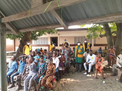 Un mois presque jour pour jour apres le don du matériel didactique au profit du Centre des Aveugles et Amblyope de Sègbèya en présence du président de la zone et les autres clubs de la zone 13, le Lions Club Cotonou EMERAUDE les mains chargés de viandes et de poissons y est retourné pour permettre aux pensionnaires de ce centre de fêter Noel en joie. C’était ce mercredi 22 Décembre 2021 dans l’enceinte du centre à Cotonou.