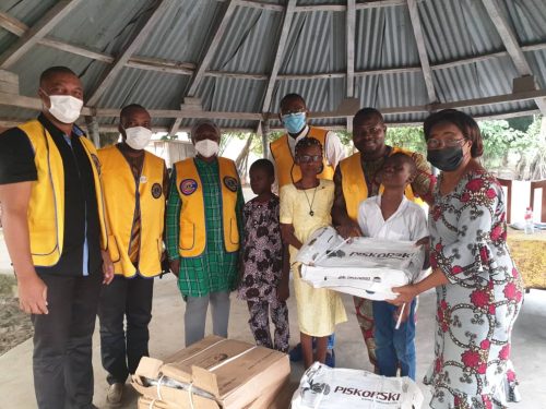4 cartons de Ailerons de dinde et 8 cartons de poissons congelés, le tout d’une valeur de 192.000 FCFA. Voila le lot de vivres que le Lions Club Cotonou EMERAUDE à travers ses membres a voulu apporté en cette periode de fêtes aux pensionnaires du du Centre des Aveugles et Amblyopes de Sègbèya. En effet, à l’occasion de la célébration de l’anniversaire d’intronisation de douze membres y il a quelques semaines, ces derniers ont eu à faire une remise d’un montant symbolique au président du club pour faire une action de lutte contre la faim (l’une des 5 axes d’actions prioritaire du lions club) au nom du club. Se fondant sur ca et sur une promesse faite au Centre des Aveugles et Amblyopes de Sègbèya lors de la cérémonie de don du matériel didactique le 23 Novembre 2021, l’action de ce mercredi 22 Decembre 2021 est une suite logique des deux précédentes. La vue faisant partie aussi des 5 axes d’actions prioritaire du lions club, le Lions club Cotonou EMERAUDE donc fait cette activité pour impacter deux actions prioritaires en cette fin d’année.
