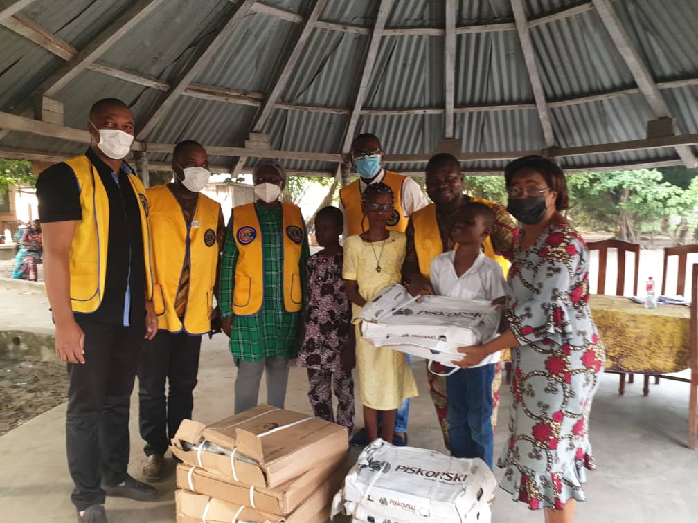 Le 23 Novembre 2021 déja, le Lions Club Cotonou EMERAUDE à travers un don à donné 30 tablettes, 30 poinçons et 05 cartons de feuilles brailles d’une valeur de cinq cent soixante quinze mille francs CFA (575.000). Ce don pour soutenir les apprenants de ce Centre pour la rentrée 2021-2022 leur donne un peu de repit au manque criard de matériel et autres equipements du centre dira la directrice. Cette oeuvre a impacté de façon directe 135 personnes et 600 indirectement à savoir: apprenants du centre, parents des apprenants, le personnel du centre, l’entourage immédiat des apprenants du centre.