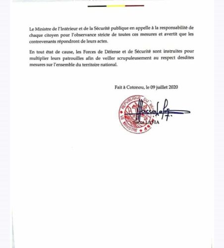 En tout état de cause, les Forces de Défense et de Sécurité sont instruites pour multiplier leurs patrouilles afin de veiller scrupuleusement au respect desdites mesures sur l’ensemble du territoire national.