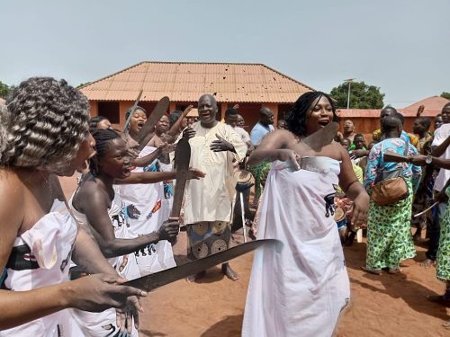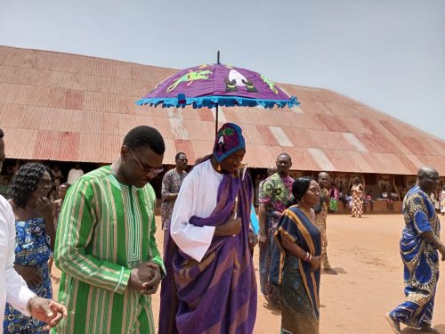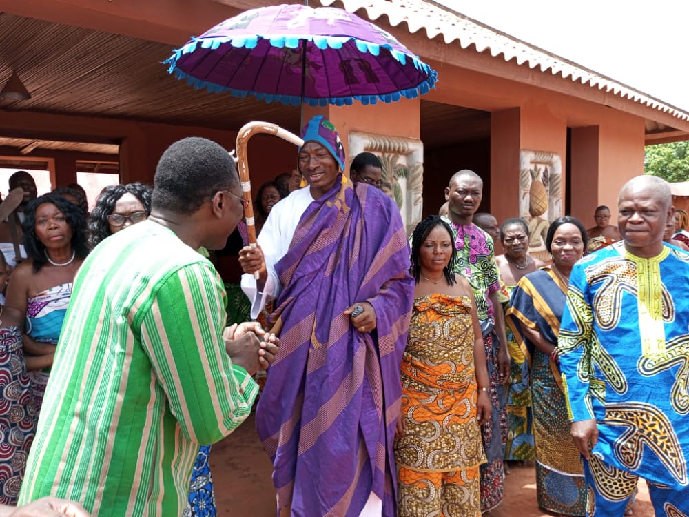 Une fois à la devanture du Palais royal, le Président de la Cour constitutionnelle a été chaleureusement accueilli par des Chants, danses, tam-tams et cris des membres et de quelques dignitaires de la Cour royale.
