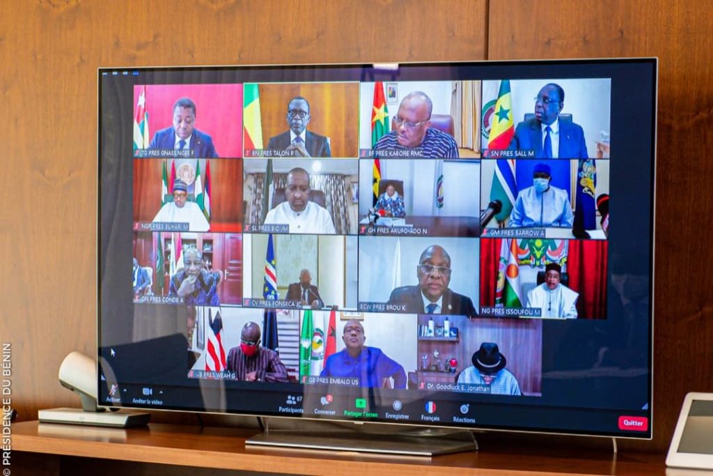 Le Président de la République, Monsieur Patrice TALON, a participé ce jeudi 20 août 2020 par visioconférence, au Sommet extraordinaire de la Conférence des Chefs d’Etat et de Gouvernement de la Communauté Economique des Etats de l’Afrique de l’Ouest (CEDEAO) sur la situation politique au Mali ; situation qui s’est aggravée par l’irruption des militaires sur la scène et la mise en place, par ceux-ci, d’un « Comité National pour le Salut du Peuple » le mardi 18 août 2020.