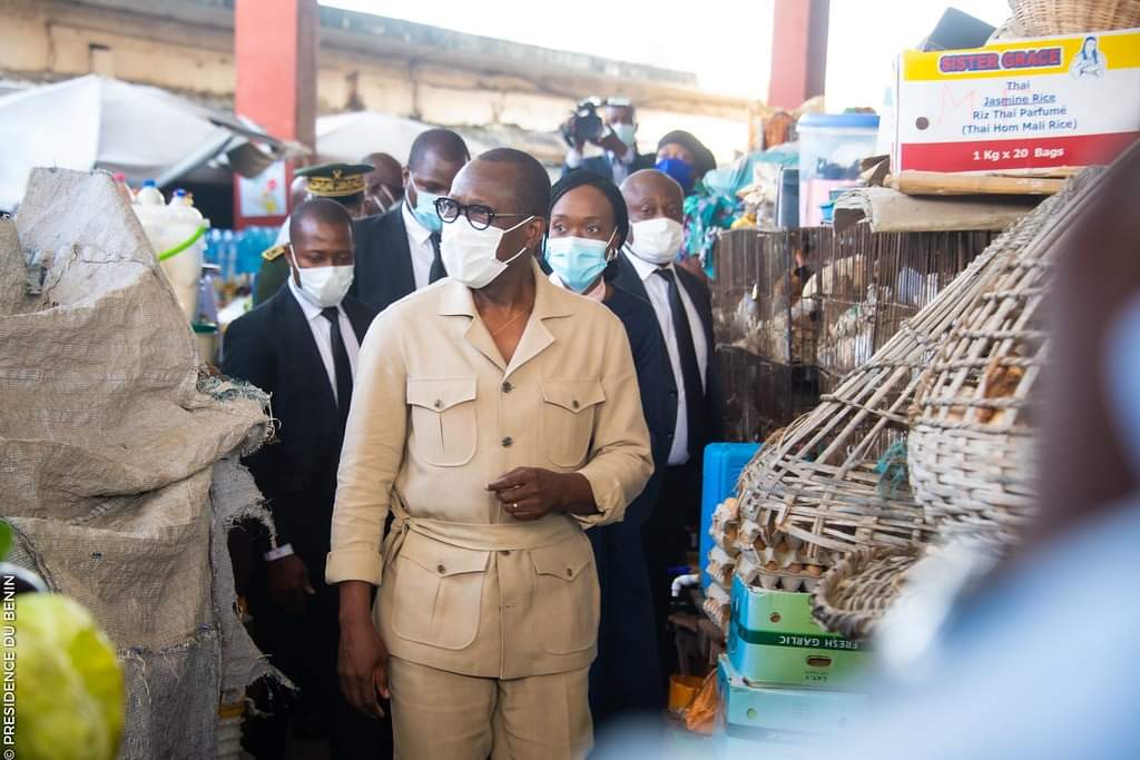 Accompagné des ministres du cadre de vie et du commerce, de la Directrice de l’Agence du cadre de vie, du Directeur Général de la SOGEMA, du Préfet des départements de l’Atlantique et du Littoral et du deuxième Adjoint au Maire de la ville de Cotonou, le Chef de l’Etat béninois a fait le tour du marché Ganhi, du site de relogement de Xwlacodji, du marché de Ménontin en passant par les marchés de PK3 à Akpakpa, Aïdjèdo et Wologuèdè. Un périple sous les ovations de populations spontanément mobilisées à chaque arrêt du cortège présidentiel et qui n’ont pas boudé leur plaisir pour exprimer leur satisfaction de la gouvernance TALON.