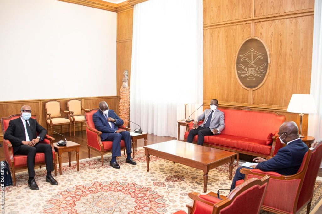 Le Président de la République du Bénin a reçu en audience un émissaire de son homologue de la Côte d’Ivoire, ce mardi 23 février 2021 au Palais de la Marina à Cotonou. Au menu des échanges entre le Chef de l’Etat béninois Patrice TALON et Albert François AMICHIA, Ministre de la Ville de Côte d’Ivoire et ancien Ministre des Sports de son pays, la prochaine élection à la tête de la Confédération africaine de football
