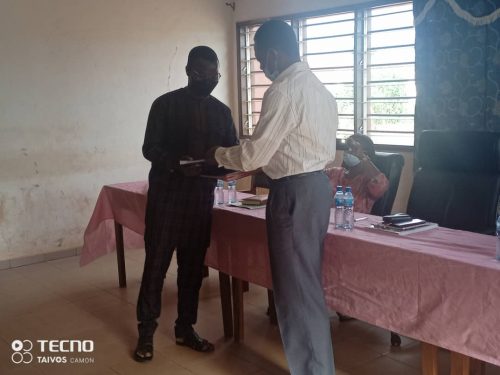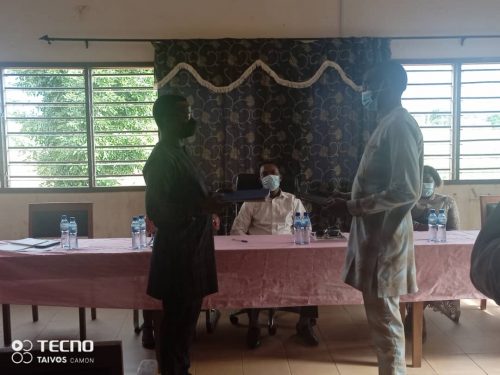 C’est dans l’après midi de ce mercredi 20 Octobre 2021, que le nouveau recteur de l’UNSTIM Abomey a entamé sa mission d’installation des directeurs et directeurs adjoints. Le Professeur Joachim GBÉNOU accompagné pour la circonstance de la secrétaire générale et l’agent comptable de l’université était dans les locaux de l’Ecole Nationale des Travaux Publics (ENSTP) pour installer le Directeur Éric ALAMOU et son adjoint Ousséni AROUNA. C’était à l’occasion d’une cérémonie forte simple qui a eu lieu à la salle de réunion de la dite école en présence du corps professoral et le personnel administratif et de soutien.