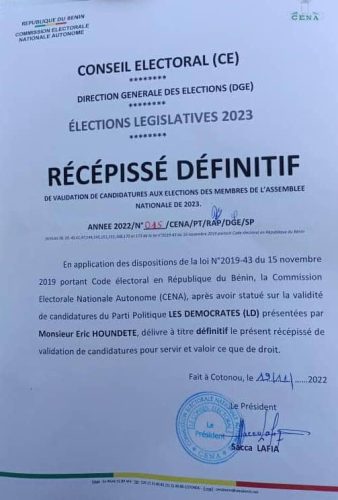 En effet, à l’opposé du scrutin de Mai 2019, celui de Janvier 2023 connaîtra de l’adversité. Taxé de match amical entre deux formations ayant la même ligne politique, les législatives de 2019, le scrutin du 08 Janvier 2023 quant à lui sera le classico de la démocratie entre les partis de la mouvance présidentielle et de l’opposition. Pour la cooptation des membres de la 9è législature, toutes les forces politiques au Bénin se sont mises sur la ligne de départ. Au décompte final à l’issu des remises des récépissés définitifs aux partis aptes pour le challenge du 08 Janvier prochain, l’institution dirigée par le président Sacca Lafia, CENA, en a déchiffré sept.