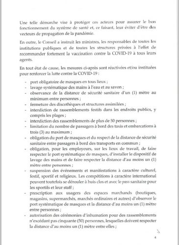 Face à la recrudescence du taux de covid 19 qui sévit depuis quelques jours, le gouvernement du Bénin a travers le conseil des ministres tenu ce mercredi 1er septembre 2021, a décidé de la suspension des événements et manifestations à caractère culturel, festif,sportif et religieux. Ainsi le public sportif béninois voit à nouveaux les activités sportives suspendues. Cependant, afin de permettre aux différentes équipes engagées dans les compétitions internationales, le gouvernement autorise les compétitions internationales tout en fixant des conditions notamment le à huit-clos et avec le pass sanitaire pour les sportifs et leur staff.