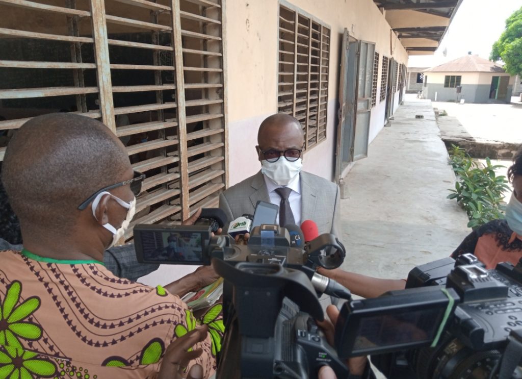 Le Ministre Mahougnon KAKPO, au CEG Pahou, ce lundi 11 mai 2020.