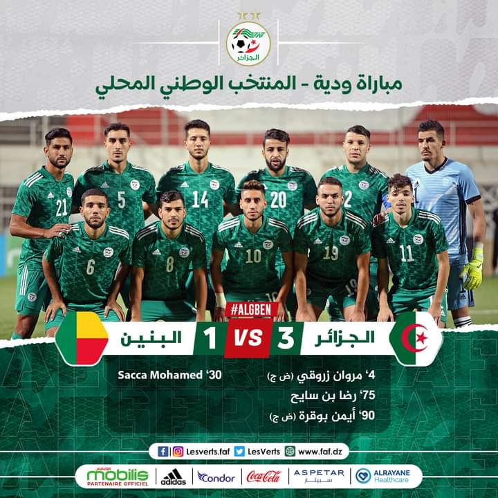 Les Écureuils du Bénin se sont inclinés 3-1 face aux Fennecs de l’Algérie ce 09 Octobre dans un match amical comptant pour la Coupe Arabe des Nations de la FIFA qui aura lieu du 30 novembre au 18 décembre 2021 au Qatar.