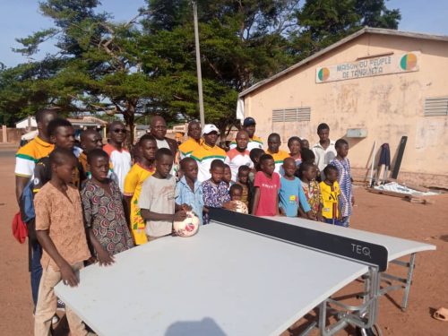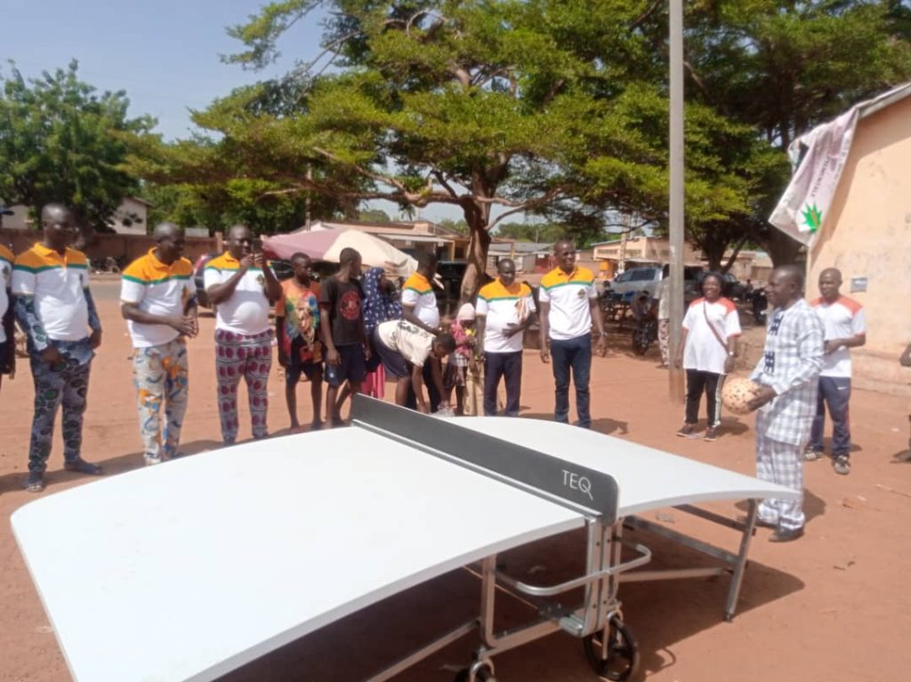 Les membres de l’Union Sportive et Culturelle de la Pendjari (USCP) ont reçu des mains du président de la Fédération béninoise de Teqball (FéBéTeq) Vincent Francis Kpohihoun des ballons et deux tables de marque Lite facilement transportables grâce à ses roues de diamètre 250 millimètres. Selon le président de la FéBéTeq, ce matériel gracieusement offert va servir à la pratique du Teqball dans la Pendjari qui regroupe les communes de Tanguiéta, Cobly, Boukombé, Matéri. «Inventée en Hongrie en 2015, cette discipline est un dérivé du football se jouant en un contre un ou par équipes éventuellement mixtes sur une table incurvée inspirée du tennis de table. Les participants se renvoient la balle avec les pieds, la tête, les genoux ou la poitrine au cours d’un seul et unique set de vingt points», a ajouté le président de la FéBéteq, Vincent Francis Kpohihoun. Au nom du Maire empêché, le deuxième adjoint Sanfo Tchansi a remercié la Fédération pour cette marque de considération avant de faire remarquer le caractère technique et ludique du jeu. Quant au président de l’Union Sportive et Culturelle de la Pendjari, il s’est dit très honoré pour le choix porté sur son association parmi celles qui étaient à la mise sur les fonts baptismaux de la FéBéteq. Le président Nagassi André a par ailleurs promis un bon usage du matériel offert évalué à plusieurs millions de francs. Une séance de démonstrations et une compétition des juniors ont clôturé cette cérémonie très rythmée aux pieds de la chaine de l’Atacora.