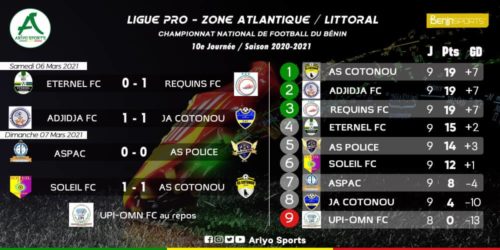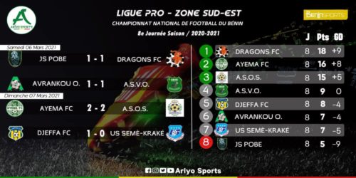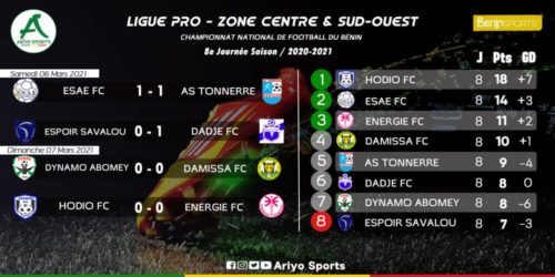 8 mars 2021 Tous les résultats et classements par zone de la 8e journée des paires et 10e journée des zones impaires. Post navigation Précédent Le Champion d’Afrique WBPF, le béninois Clément Loko met son titre en jeu en Côte d’Ivoire.Suivant Des noms de chefs d’État ouest africains cités Laisser un commentaire Annuler la réponseVous devez vous connecter pour publier un commentaire. Voir aussi Actualités La Une Médias et inclusion financière au Bénin Le RJCIF créé, Adam HOUETENON élu Président 12 décembre 2025 Actualités Sports CAN MAROC 2025 : les 28 Guépards retenus par Rohr ! 12 décembre 2025 Actualités La Une Politique LES MINISTRES DES AFFAIRES ÉTRANGÈRES DU NIGÉRIA ET DU BÉNIN TIENNENT UNE CONFÉRENCE DE PRESSE CONJOINTE SUR LE RÉTABLISSEMENT DE LA GOUVERNANCE DÉMOCRATIQUE AU BÉNIN ET LA SÉCURITÉ RÉGIONALE 12 décembre 2025