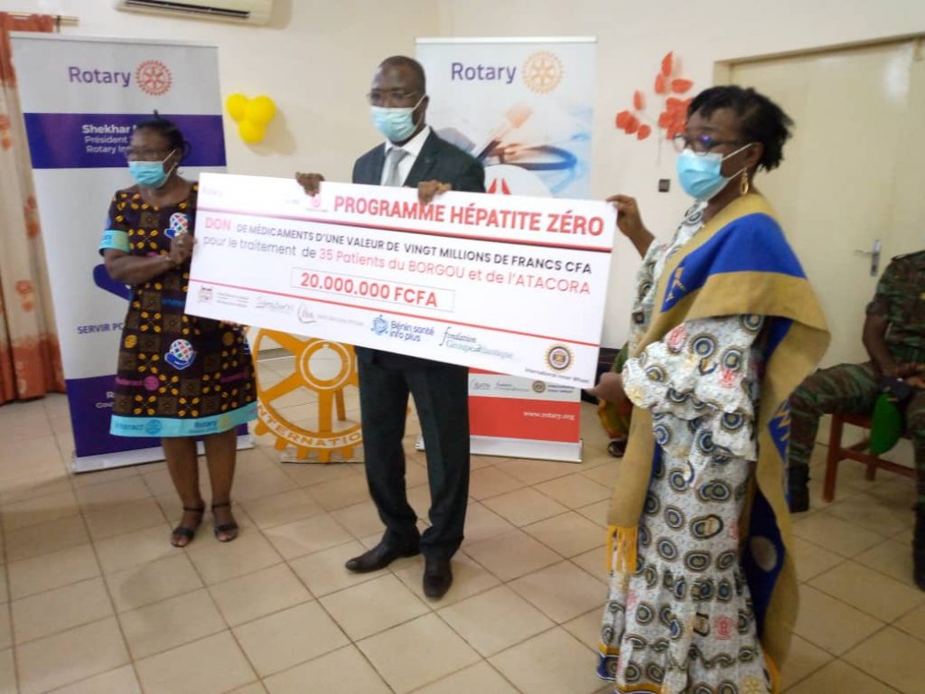 Conformément aux directives du Président du Rotary International Shekhar METHA et au thème de l’année rotarienne 2021-2022 qui est de « servir pour changer des vies », les Rotary clubs du Bénin et du District 9102 se mobilisent énergiquement contre les hépatites virales en général et l’hépatite C en particulier. Dans ce cadre, une cérémonie de remise de médicaments pour le traitement de 35 patients porteurs de cette pathologie s’est déroulée le jeudi 07 octobre 2021 à la salle CIPEC du CHD Borgou-Alibori de Parakou en présence des responsables de l’organisation, des autorités sanitaires, des élus locaux et des bénéficiaires.