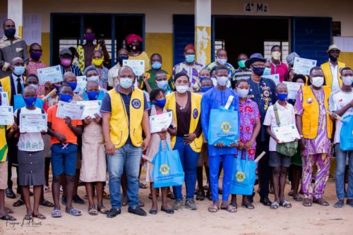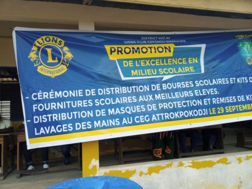 Le collège d’enseignement général de la localité d’Atrokpocodji , premier du Bénin au BEPC a reçu la visite des membres du Lions Club Cotonou Emeraude. Les bras chargés de kits scolaires, de kits pour Covid à savoir les masques et des dispositifs de lavage de mains, de bourses scolaires, cette organisation prime les meilleurs élèves de cet établissement. En présence des membres de l’association des parents, élèves et enseignants, contents de l’acte posé par Lions Club Cotonou Emeraude.