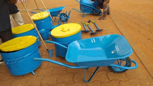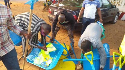 Brouettes, balais, houes, poubelles, masques de protection contre le coronavirus, des gilets et des sceaux. Les bras chargés de ce lot de matériel que le Président en exercice de Lions club Cotonou Saphir , Abdoulaye BACHAROU a remis au maire de la localité, Simon Abébayo Dinan en présence du Chef de l’arrondissement de Pobè, du Président de la commission de l’énergie, eau et assainissement et celui de la commission des affaires extérieures et de la coopération décentralisée et des cadres de l’administration fortement mobilisés pour l’activité.