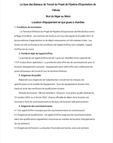 Le Quai des Bateaux de Travail du Projet de Pipeline d’Exportation de Pétrole