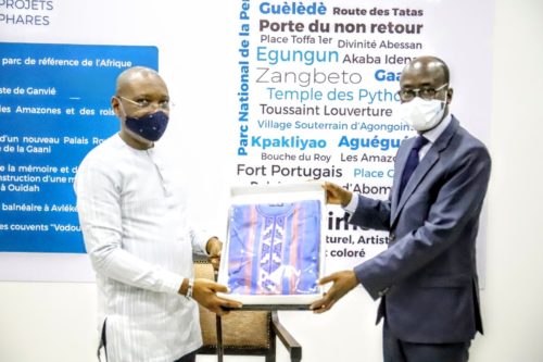 En visite de travail au cabinet du ministre de la culture jeudi dernier, le créateur Lolo Andoche et son hôte ont revisiter l’univers de la mode au pays mais surtout montrer l’un à l’autre son amour à promouvoir le made in Bénin à travers le Kanvo.