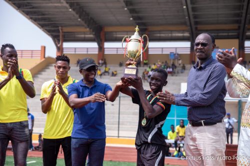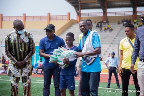 Invité à ce tournoi et présent du début jusqu’à la fin, le Préfet du département du Mono Bienvenu Dêdêgnon a remercié la Loterie Nationale du Bénin et son Directeur Général, Gaston Zossou ( président de Loto-Popo ) pour l’initiative, le gouvernement du Président Patrice Talon.Il a aussi reconnu le mérite de Loto-Popo avant de souhaiter le succès au club »J’ai de très belles impressions. Je voudrais avant tout remercier la Direction générale de la Loterie Nationale du Bénin à travers le leadership visionnaire de son premier patron, qui a su permettre aux enfants de fêter Noël à travers l’expression de leurs talents. Je pense que c’est une belle initiative. Depuis hier, nous avons constaté que nous avons des talents qu’il faut entretenir et valoriser. Je voudrais donc au nom de la population du Mono et de Grand-Popo en particulier, félicité les patrons de Loto-Popo pour avoir choisi notre département même si c’est leur stade de prédilection compte tenu des réformes qui tournent autour des 22 stades que nous avons construit. J’ai eu la chance de participer au ministère des sports à ce projet avant d’atterrir dans le département. Donc je suis satisfait de savoir que ça se passe sur mon territoire. Par cette initiative, vous demontrez que le gouvernement n’a pas eu tort de doter non seulement les communes de ces stades. Mais aussi de réformer le mouvement sportif à travers la création des sociétés sportives. Je voudrais reconnaître au nom du gouvernement tout le mérite de Loto-Popo à travers cette initiative qui n’a l’air de rien mais qui marque un point de départ pour la détection de talents, mais aussi permettre à ces enfants, qui manquent d’espace de jeu, d’expression autres que l’école et la famille de venir exprimer leurs talents et pour quoi pas avoir la chance de démontrer qu’ils sont capables de faire mieux que tout ce que nous avons aujourd’hui comme gloire à célébrer dans l’espace sportif. Je voudrais donc terminer en souhaitant plein succès aux dirigeants de Loto-Popo et les féliciter déjà et les encourager pour nous ramener encore le sacre au terme du championnat. C’est pour le mérite du département. »