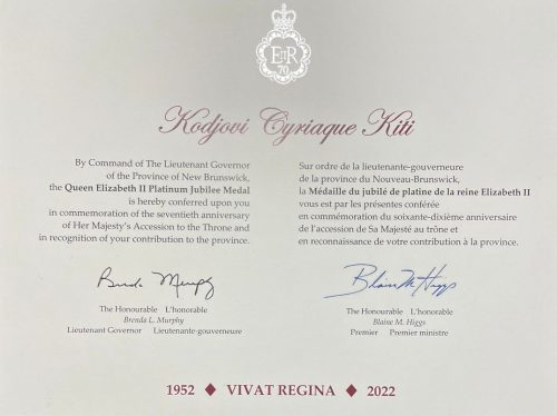 Signalons que la particularité de la distinction du Consul honoraire du Bénin à Moncton réside en ce qu’elle intervient dans le cadre du Jubilé de platine de la reine Élisabeth Il, désormais dans l’éternité.