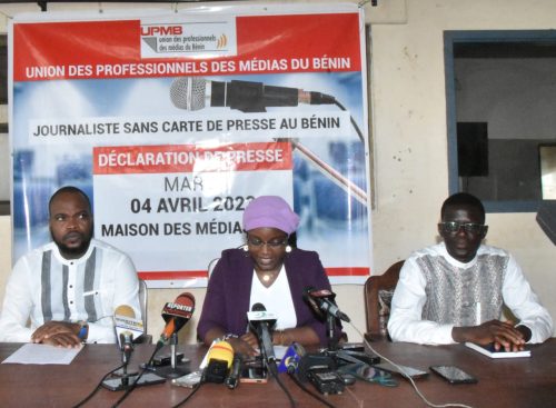 Face à la presse ce Mardi 04 Avril 2023 à la maison des médias de Cotonou, Zakiath Latoundji et ses pairs de l’UPMB n’y ont pas emprunté quatre chemins pour présenter le statut du journaliste en République du Bénin depuis 11 mois. Pour l’Union des Professionnels des Médias du Bénin aucun journaliste exerçant ce métier en République du Bénin n’a qualité de cette fonction depuis le 30 Mai dernier. » Il se trouve qu’aujourd’hui notre pays ne compte nous officiellement de professionnel des médias en activité pouvant réclamer le titre de journaliste et exercer sans crainte son métier d’information des citoyens depuis le 30 Mai 2022 ( date d’expiration de toutes les cartes de presse sur toute l’étendue du territoire national), a précisé la présidente du syndicat, Zakiath Latoundji.