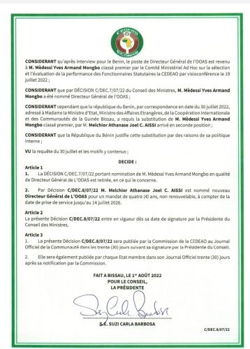 4 août 2022 Post navigation Précédent La Chine y exprime sa ferme opposition et sa condamnation sévèreSuivant Elie Akobeto rejoint le Pays de Galles Voir aussi Actualités La Une Médias et inclusion financière au Bénin Le RJCIF créé, Adam HOUETENON élu Président 12 décembre 2025 Actualités Sports CAN MAROC 2025 : les 28 Guépards retenus par Rohr ! 12 décembre 2025 Actualités La Une Politique LES MINISTRES DES AFFAIRES ÉTRANGÈRES DU NIGÉRIA ET DU BÉNIN TIENNENT UNE CONFÉRENCE DE PRESSE CONJOINTE SUR LE RÉTABLISSEMENT DE LA GOUVERNANCE DÉMOCRATIQUE AU BÉNIN ET LA SÉCURITÉ RÉGIONALE 12 décembre 2025