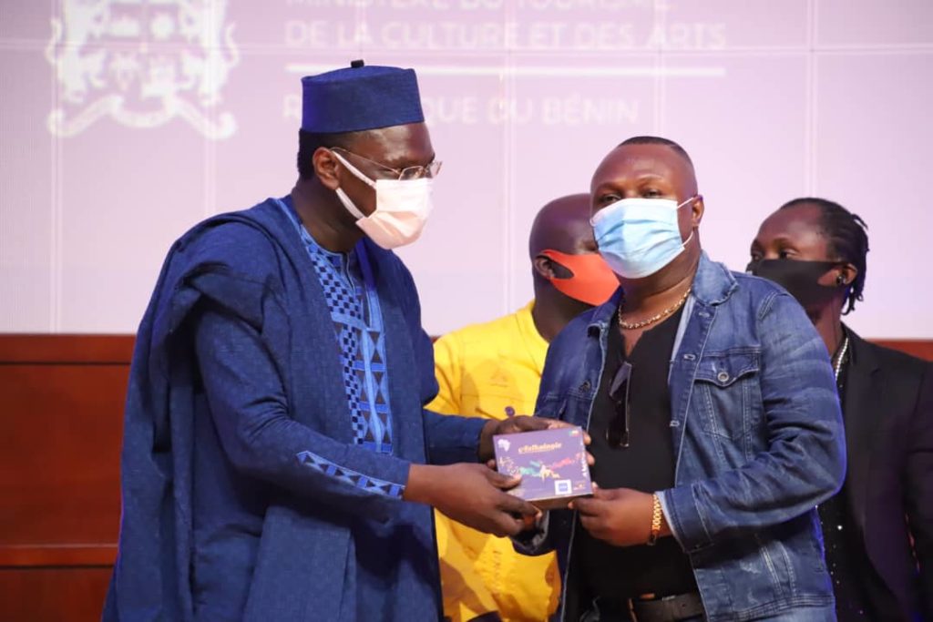Ce coffret exceptionnel de 63 chansons (produites de 1960 à nos jours) a été réalisé par 53 artistes, et nous invite à un voyage musical assez étonnant sur les routes du Bénin. Un cocktail obtenu a tout d’une sélection éclectiquement épicée à offrir aux Béninois, aux diplomates, aux personnalités et autres Représentants des organisations internationales. Le Professeur Joseph DJOGBENOU qui affiche régulièrement une passion pour la musique et revendique ouvertement les valeurs de cet art, n’a pas caché sa joie tout au long de la soirée. A noter que trois ministres du gouvernement étaient au lancement de ce coffret anthologie de la musique béninoise.