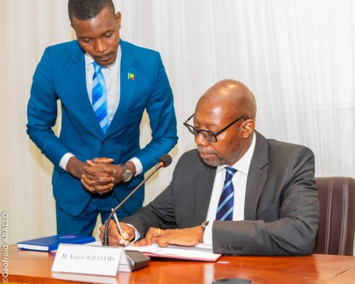 La Cérémonie de signature du mémorandum entre la NBA-Africa et le ministère des sports du Bénin a eu lieu le mardi 17 mai 2022 sous la houlette des deux parties. C’était dans les locaux de salle Fleuve Jaune du Ministère des Affaires Etrangères et de la Coopération. Objectif, faire développer le basketball béninois et donner des opportunités aux basketteurs et basketteuses béninois de réaliser leur rêve.