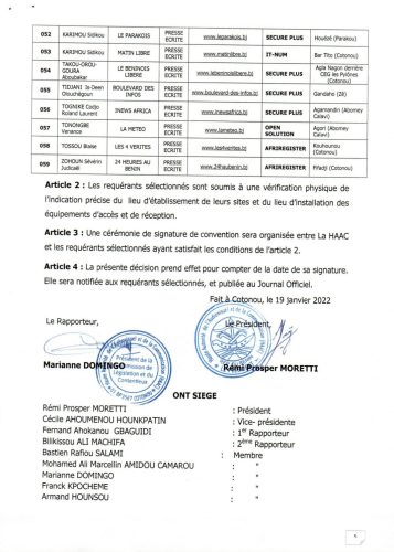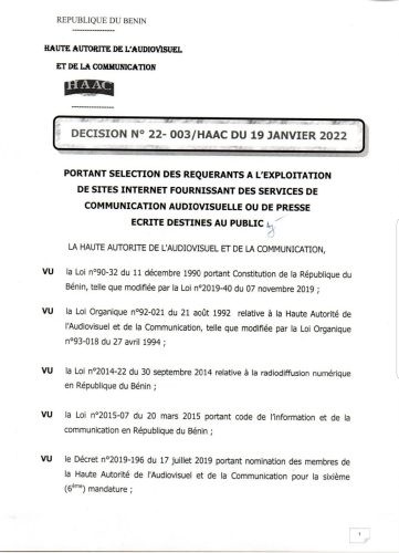 25 janvier 2022 Medias en ligne au Bénin: NOTRE EPOQUE et 58 autres autorisés Post navigation Précédent Avis d’Appel d’Offres pour les Services techniquesSuivant Gérard Guèdègbé expose les avantages pour les médias africains Voir aussi Actualités La Une Médias et inclusion financière au Bénin Le RJCIF créé, Adam HOUETENON élu Président 12 décembre 2025 Actualités Sports CAN MAROC 2025 : les 28 Guépards retenus par Rohr ! 12 décembre 2025 Actualités La Une Politique LES MINISTRES DES AFFAIRES ÉTRANGÈRES DU NIGÉRIA ET DU BÉNIN TIENNENT UNE CONFÉRENCE DE PRESSE CONJOINTE SUR LE RÉTABLISSEMENT DE LA GOUVERNANCE DÉMOCRATIQUE AU BÉNIN ET LA SÉCURITÉ RÉGIONALE 12 décembre 2025