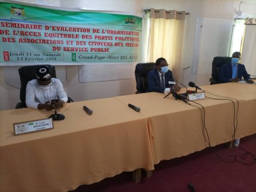 Le Président de la Haute Autorité de l’Audiovisuel et de la Communication (HAAC), M. Rémi Prosper MORETTI, a procédé ce jeudi 11 février 2021 à Grand Popo, à l’ouverture officielle du séminaire d’évaluation de la Décision relative à l’organisation de l’accès équitable des partis politiques, des associations et des citoyens aux médias du service public. C’était en présence de tous les conseillers à la HAAC et des cadres, de représentants de l’Assemblée Nationale, d’associations professionnelles des médias, des organisations de la société civile, de partis politiques, du Ministère de la Justice.