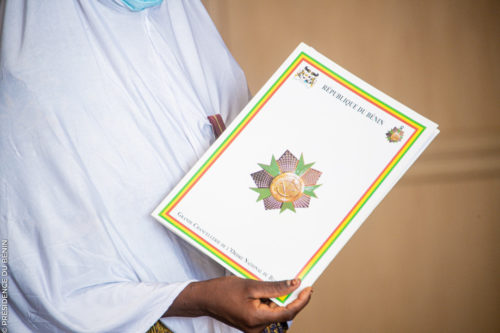 Pour lui témoigner la reconnaissance de la Nation, j’ai décidé de l’élever au rang de chevalier de l’Ordre national du Mérite du Bénin.