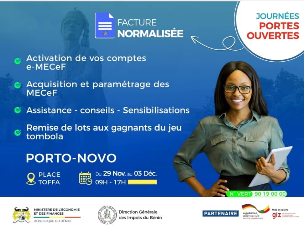 Porto-Novo, Adjashè, cité des Ayionvi et capitale du Bénin sera à l’honneur du lundi 29 novembre au 03 décembre prochain après Cotonou, Parakou et Lokossa. Ainsi en ont décidé les autorités la Direction Générale des Impôts du Bénin (DGI) avec l’appui de la GIZ dans le cadre de la 4è édition des journées portes ouvertes sur la réforme des factures normalisées.