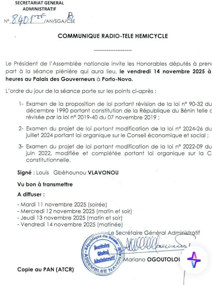 11 novembre 2025 Post navigation Précédent Planification et intégration du volontariat dans les politiques publiques et locales : Cotonou trace la voieSuivant Révision de la constitution au Bénin : le mandat de président, de députés et de maires porté à sept ans Voir aussi Actualités La Une Assemblée Générale UPMB : Hervé Prudence Hessou, plébiscité président ! 4 décembre 2025 Actualités Agriculture La Une Projet CASCADE /Adoption des Régimes Alimentaires Sains et Équilibrés pour la Résilience des Ménages au Bénin : ASCINB outille les points focaux communaux et relais départementaux de ses OSC membres et partenaires des départements du Sud 3 décembre 2025 Actualités La Une Sports CAN Maroc 2025: Louis Houngnandandé et Éric Ayimavo retenus comme officiels 3 décembre 2025