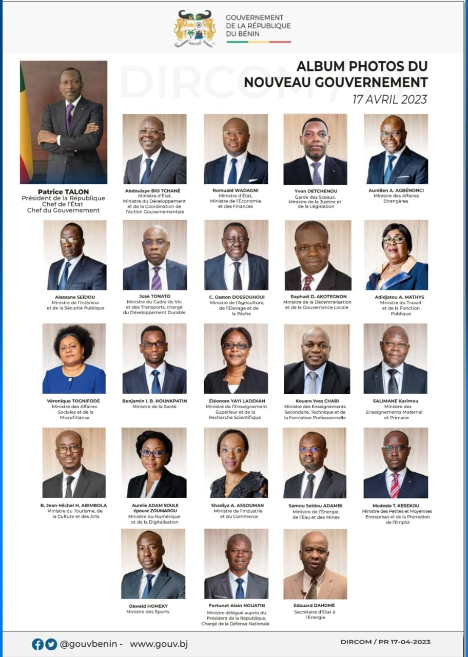 À l’opposé de ses indésirables, Talon place sa confidence en deux nouveaux citoyens pour l’aider dans la poursuite et son Programme d’Action. Yvon Détchénou et Édouard Dahomé, comme c’est d’eux qu’il s’agit sont les nouveaux élus de Patrice Talon pour siéger dans le gouvernement béninois. Yvon Détchénou rentre dans le gouvernement en qualité du Garde des sceaux, ministre de la justice et de la législation tandis que Édouard Dahomé est missionné pour assurer la responsabilité du Secrétariat d’État à l’énergie, un nouveau bébé du gouvernement de Talon. Le département des Transports laissés par Hervé Hèhomey est désormais sous la tutelle du ministère que conduit José Tonato avec comme libellé Ministère du Cadre de Vie et des Transports, chargé du développement durable. Quant à celui que gérait, Jean Claude Houssou, c’est désormais Samou Seidou Adambi qui prend la commande cumulativement avec ses fonctions d’avant. Ainsi Samou Seidou Adambi, est désormais le ministre de l’Énergie , de l’Eau et des Mines. Rappelons que le remaniement ministériel de ce lundi a vu la sortie de trois ministres et de deux entrées dont un ministre et un secrétaire d’État dans le gouvernement