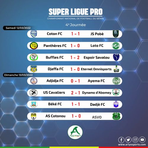 14 mars 2022 Post navigation Précédent Journées FIFA : La première liste de Moussa Latoundji avec Tosin Aiyegun et Ange Josué Chibozo !Suivant « La personne dépressive peut aussi développer des troubles de sommeil » Voir aussi Actualités La Une Médias et inclusion financière au Bénin Le RJCIF créé, Adam HOUETENON élu Président 12 décembre 2025 Actualités Sports CAN MAROC 2025 : les 28 Guépards retenus par Rohr ! 12 décembre 2025 Actualités La Une Politique LES MINISTRES DES AFFAIRES ÉTRANGÈRES DU NIGÉRIA ET DU BÉNIN TIENNENT UNE CONFÉRENCE DE PRESSE CONJOINTE SUR LE RÉTABLISSEMENT DE LA GOUVERNANCE DÉMOCRATIQUE AU BÉNIN ET LA SÉCURITÉ RÉGIONALE 12 décembre 2025