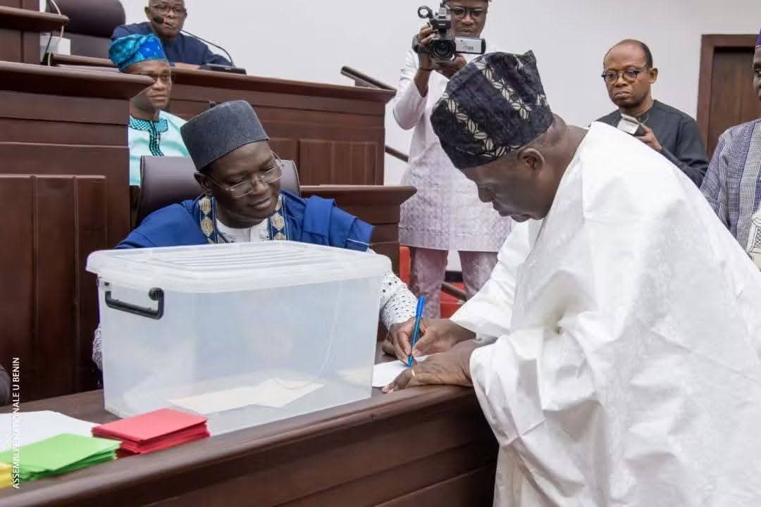 Les députés de la 9e législature de l’Assemblée nationale du Bénin se sont retrouvés en séance plénière ce vendredi 14 novembre 2025 au Palais des gouverneurs de Porto-Novo à l’invitation du Président Louis Gbèhounou Vlavonou. Ils ont adopté par 90 voix pour et 19 contre la loi N°2025-20 du 14 novembre 2025 portant modification de la loi N° 90-32 du 11 décembre 1990 portant Constitution de la République du Bénin révisée par la loi N° 2019-40 du 07 novembre 2019 introduite par les Présidents Assan Seybou du groupe parlementaire Bloc Républicain et Aké Natondé du groupe parlementaire Union progressiste le Renouveau.