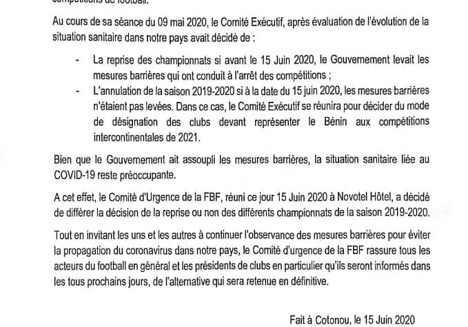 Actualités Sports Championnat national de football : La FBF donne le coup de sifflet final 1 juillet 2020