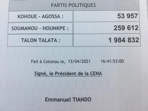 Bénin: Résultats provisoires du scrutin du 11 avril 2021
