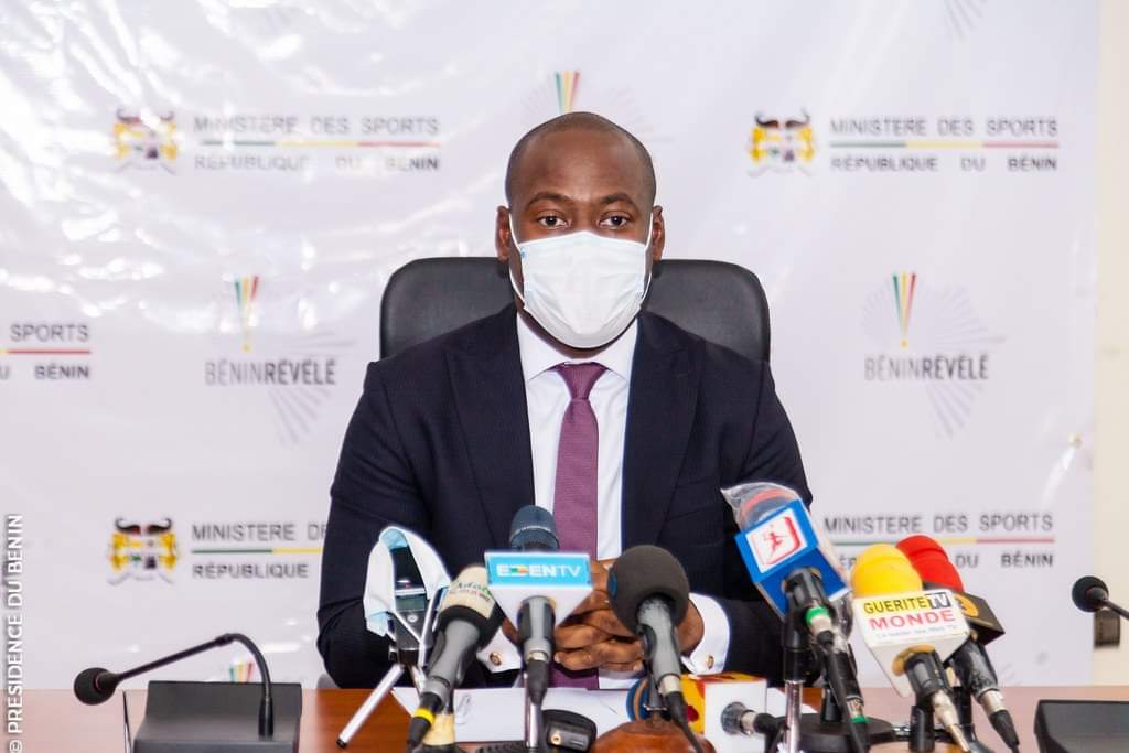 Le Ministre des Sports, Monsieur Oswald HOMEKY, a animé une conférence de presse dans l’après-midi du jeudi 2 juillet 2020 à la salle de conférence de son ministère. Occasion choisie par le maître des lieux pour donner plus de détails sur le projet de mise en place d’une Unité de Production de Contenus sportifs, une initiative du gouvernement du Bénin. Il était assisté de Messieurs Eddy RABIN et Benoît FAUVET, respectivement Consultant, Chef de Mission Technique et Coordonnateur Technique du projet.