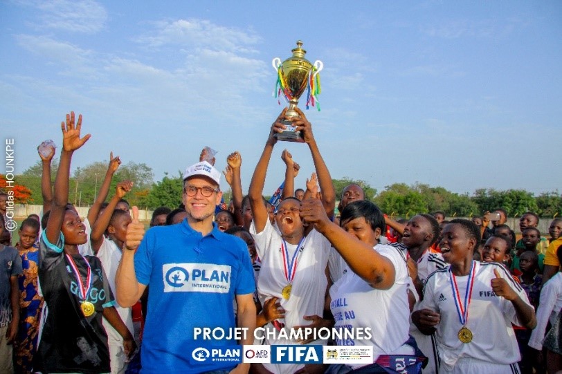 « Permettre aux filles de vivre, jouer au football en sécurité et s’épanouir.» tel est le thème développé par les organisateurs du projet « CHAMPIONNES » pour le compte de la première édition de cette initiative qui fonde ses activités sur un cycle d’apprentissage par l’expérience pour développer les compétences de vie courante chez les apprenants. Ainsi, pour le compte de la finale de cette première édition qui a regroupé près de 1440 filles (12-24 ans), élèves et apprenties, déscolarisées ou non scolarisées et 360 garçons élèves (12-18 ans) de 60 villages disposant de Collège d’Enseignement Général (CEG) dans douze communes de l’Alibori, l’Atacora et de la Donga, a connu son épilogue il y a quelques jours. Et pour le compte de cette première finale du championnat de football féminin initié par ce projet, qui s’est déroulé en trois phases : phase inter village avec quarante-neuf matches joués ; phase inter communale avec sept matches joués en quatre poules; et la phase inter départementale qui a permis de jouer les deux affiches des demi-finales, et la finale. Et pour le compte de cette phase finale, l’équipe de kandi était face à son homologue de Toucountouna sur les installations du stade de Natitingou. Sans rounds d’observations, les différents acteurs se sont faire plaisir sur l’aire de jeu à travers les différentes actions obtenues. Au terme du temps règlementaire, c’est l’équipe de Toucountouna qui arrive a décroché le précieux sésame mis en jeu par les organisateurs en battant son adversaire, l’équipe de kandi sur le score de deux buts à un. Heureux de cette initiative à l’endroit des filles, le Représentant Résident de Plan International Benin, Karl-Frédérick PAUL a remercié les partenaires et les équipes participantes de ce projet et a rappelé que : « l’égalité des sexes et des genres n’est pas seulement un droit fondamental mais aussi une condition nécessaire pour l’instauration d’un monde pacifique, prospère et durable. Nous souhaitons mettre fin aux inégalités basées sur le genre et pour y parvenir l’implication de tous est indispensable. » a-t-il déclaré. Pour Jérôme BERTRAND-HARDY, directeur de l’AFD au Bénin, « le projet CHAMPIONNES est la première concrétisation du partenariat de son institution avec la FIFA pour la promotion du football féminin et le football à l’école. Ce partenariat s’inscrit dans la logique des engagements de l’AFD et bien au-delà du gouvernement français. Cet engagement vise à favoriser l’avènement des femmes et des filles fortes, sûres d’elles-mêmes et de leur place dans la société avec des communautés sensibilisées sur les violences faites aux femmes, et les caractères nocifs de ces violences. » a-t-il signalé. Abondant dans le même sens que ce dernier, le directeur technique national de la Fédération béninoise de football, Adolphe OGOUYON a expliqué les résultats de ce projet. Pour lui, « le projet CHAMPIONNES permet d’organiser des séances d’entraînement de football régulières dans les infrastructures pour les filles de tous les âges afin qu’elles aient plus souvent l’occasion de perfectionner leur jeu et de s’adonner à leur passion. Ces séances sont un excellent moyen pour les filles de découvrir le football en s’amusant et de développer leur estime de soi, la confiance en soi et ainsi contribuer au développement de leur leadership pour prendre et assumer plus tard des responsabilités à tous les niveaux. ». a-t-il conclu. Pour, le Point Focal du projet CHAMPIONNES au Ministère des Enseignements Secondaire Technique et de la Formation Professionnelle, SMITH Gael « le sport se conjugue très bien au féminin chez nous au Bénin. Ce qu’il faut retenir, c’est que, pour nous, ce qu’un homme fait, une femme est capable de le faire et même de le faire mieux. Le Bénin, c’est le pays des amazones et donc nous croyons que les femmes sont aussi capables de beaucoup de prouesses. ». Rappelons que cette première édition du projet a été organisé du 08 au 22 Avril 2022 avec des compétitions sportives dans les départements de l’Alibori, de l’Atacora et de la Donga et que outre les activités sportives qui participent au développement des compétences de vie (communication, leadership, résolution pacifique de problème, confiance en soi, estime de soi, travail en équipe), que les filles bénéficient d’autres séances qui sont des opportunités de renforcement de leurs capacités à travers la mise en place et l’animation des Associations de Jeunes d’Epargne et de Crédit (AJEC) d’une part, de groupes de discussion et d’éducation par les paires dénommée Champions du Changement (CoC).