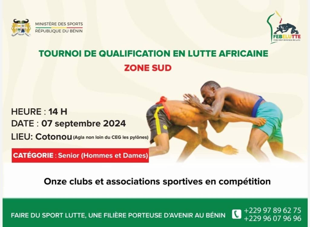 Le comité exécutif de la Fédération béninoise de lutte organise le samedi 07 septembre 2024 à Cotonou l’étape de la zone sud du tournoi régional de qualification en lutte africaine et associations sportives. Ainsi, onze clubs et associations sportives ont été conviés pour prendre part à cette compétition afin de déterminer les trois représentants qui restent pour participer à ladite compétition, non loin du Collège d’Enseignement Général les Pylônes à Agla . En effet , Plus de cent lutteurs et lutteuses de la catégorie séniors et provenant des départements de l’Atlantique, du littoral, de l’Ouémé et du Plateau s’affrontent dans des combats épiques.
