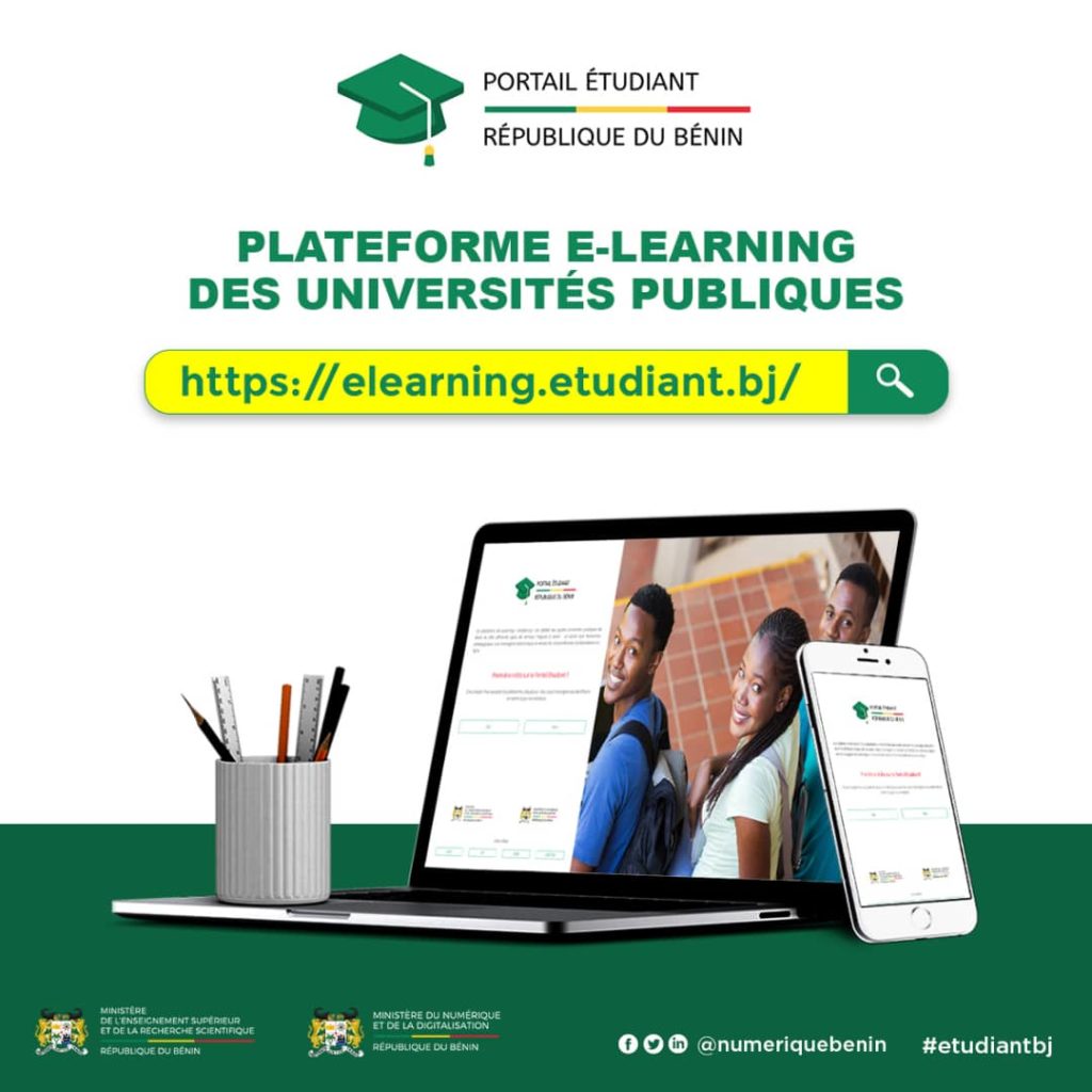 Cette plateforme, qui est accessible à l’adresse e-learning.etudiant.bj vous avez expliqué le contexte dans lequel nous avons pu aussi mettre en œuvre sous le leadership du Président de la République, cette plateforme qui assure la continuité pédagogique dans nos universités et donc il s’agit d’une plateforme unique qui permet aux étudiants de pouvoir accéder aux ressources pédagogiques en ligne, de pouvoir aussi avoir accès à une messagerie électronique et à un chat.Une façon en fait de pouvoir avoir du support de la part de l’équipe technique de l’Agence nationale de Sécurité des Systèmes d’Information qui est en fait l’instance de mise en œuvre de la plateforme et nous avons également une plateforme de visioconférence qui permet aux professeurs de pouvoir donner les cours aux étudiants en direct. Donc ce sont les quatre services majeurs qu’offre aujourd’hui la plateforme de e-learning des universités publiques du bénin.