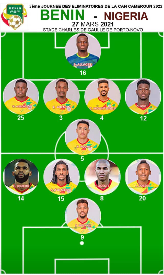 Chez les locaux, les deux joueurs forfaits pour la rencontre sont Rodrigue Kossi et Jacques Bessan. Ils évoluent tous du côté de la première division Tunisienne. Pour pallier à ces absences de dernière minute, Michel Dussuyer a fait appel à deux remplaçants. Il s’agit de Jean Ogouchi évoluant chez les Dragons de l’Ouémé et de Yannick Aguemon qui joue en Belgique. La sélection nigériane sera également amputée de Alex Iwobi dont le test PCR est revenu positif.